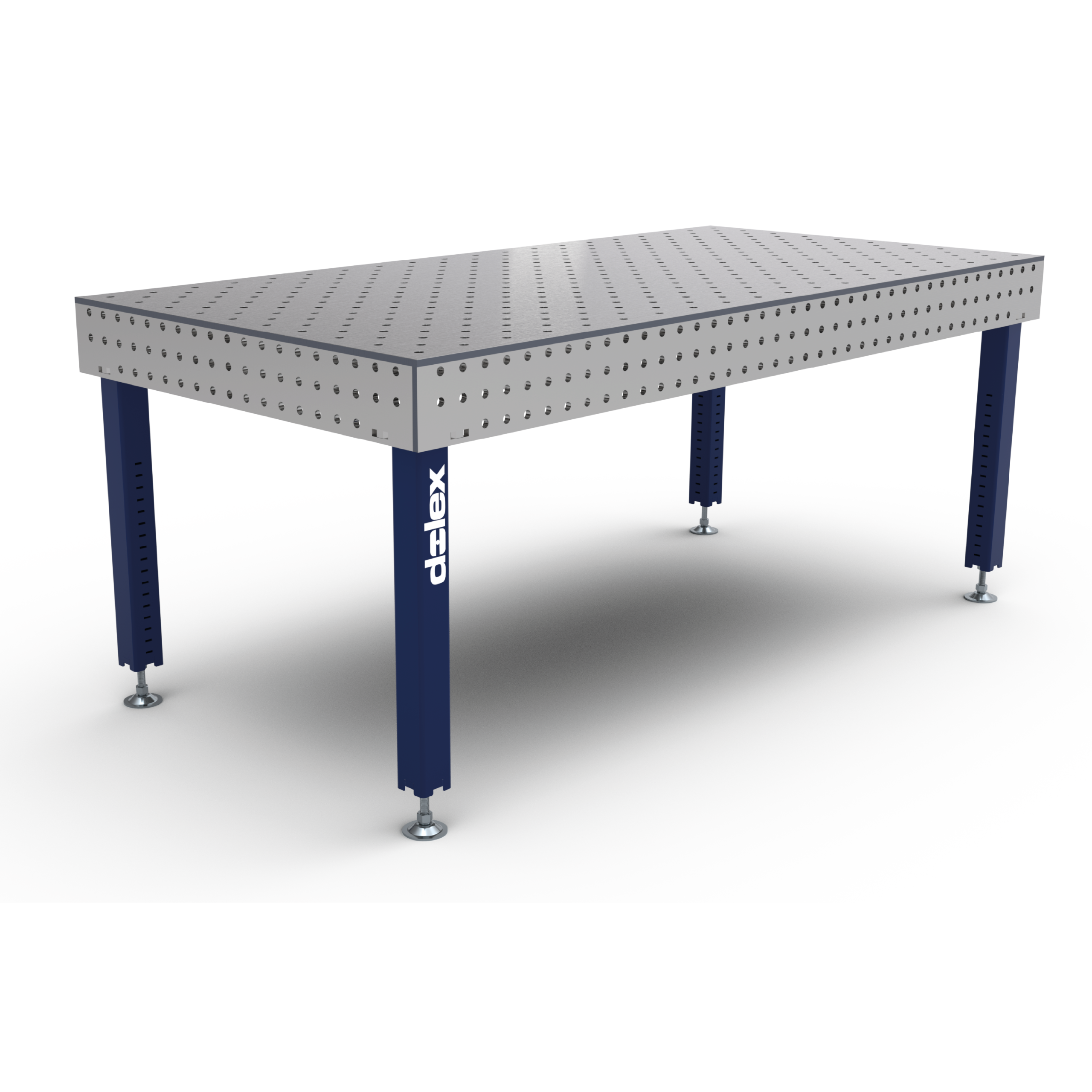 • La surface de la table est percée de trous de 16 mm de diamètre, espacés de 100 mm en quinconce, facilitant la fixation d’éléments ou d’outils pour diverses opérations de soudure. Cette configuration modulaire permet une grande polyvalence dans l’utilisation de la table.